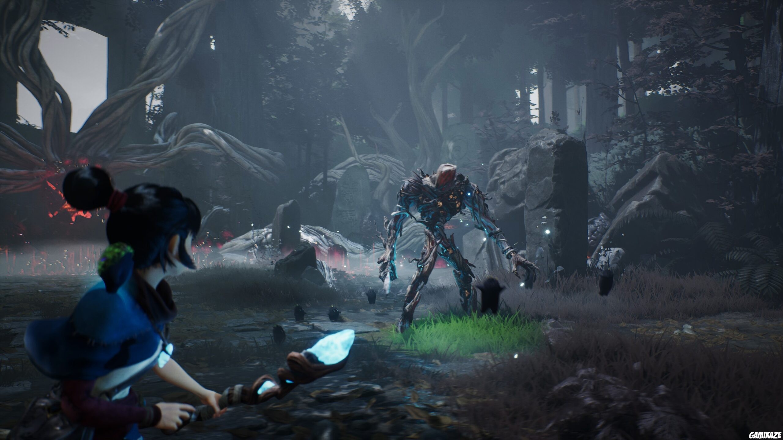 Kena: Bridge of Spirits est un jeu d’action-aventure narratif dans lequel vous incarnez Kena, une jeune guide des esprits chargée d’aider les âmes tourmentées à trouver la paix. En explorant une forêt mystérieuse marquée par la corruption et les souvenirs du passé, elle utilise ses pouvoirs spirituels et l’aide de petites créatures appelées les Rot pour combattre des ennemis, résoudre des énigmes et restaurer l’équilibre du monde.